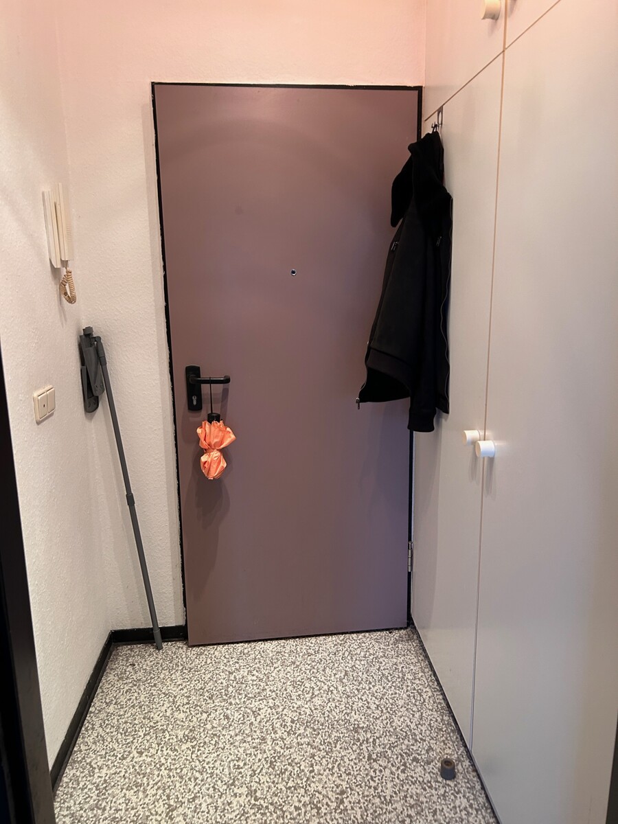 Dieses Single-Apartment verfügt über einen Flur mit Einbauschrank, Wohn-Schlafraum mit Küchenzeile und Fenster, Bad mit Dusche und WC sowie einen kleinen Balkon.