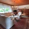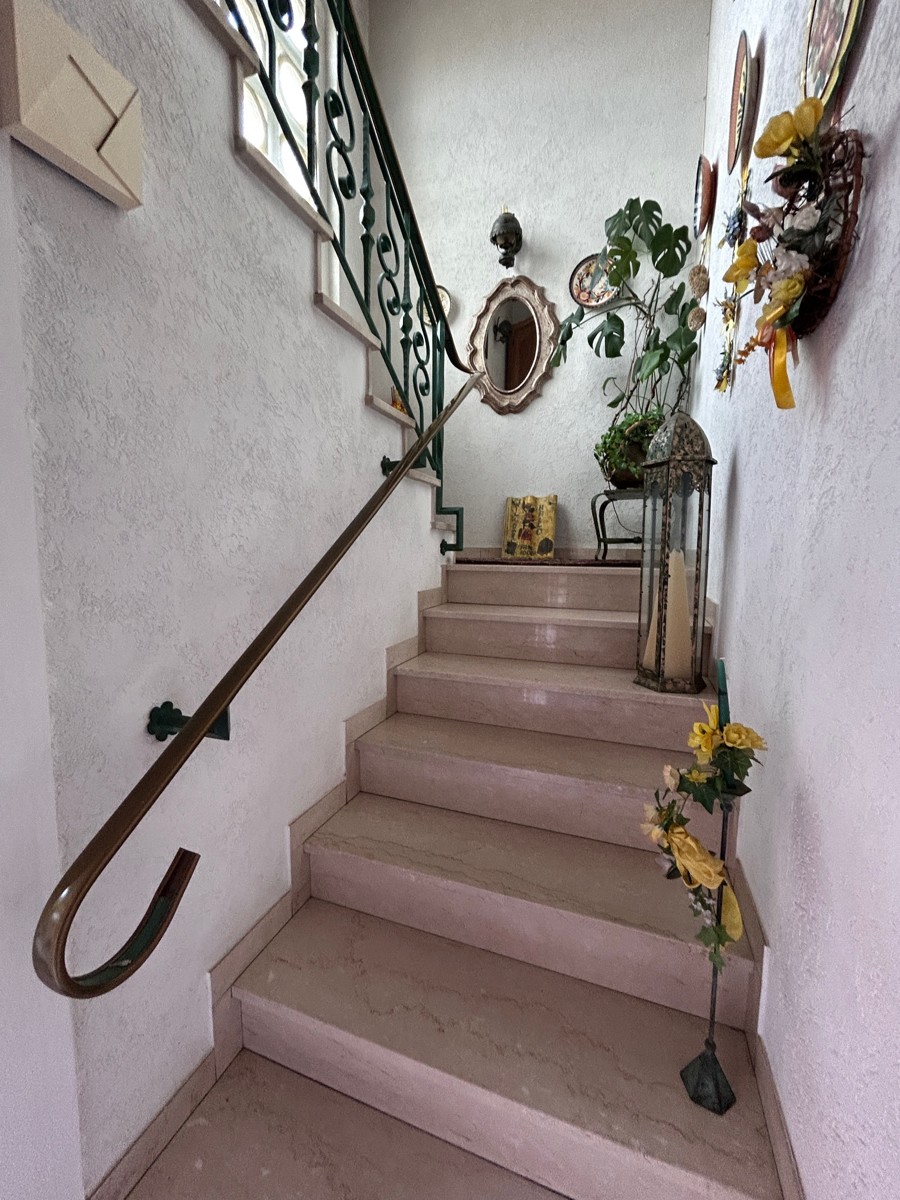Vom Eingangsbereich im Untergeschoss gelangt man in eine kleine 61 qm große Einliegerwohnung mit Küche, Esszimmer, Wohnzimmer, Schlafzimmer und Bad mit Dusche, Wanne und WC. Ebenfalls auf dieser Ebene befinden sich der Heizungskeller, ein Kellerraum, der als Vorratsraum dient und der Zugang zur Garage mit kleiner Werkstatt. Über eine schöne Marmortreppe gelangt man in den Hauptwohnbereich im Erdgeschoss (ca. 118 qm Wohnfläche). Dort befinden sich Küche, Gäste-WC, Badezimmer mit Dusche, Wanne und WC, Schlafzimmer, Esszimmer, Wohnzimmer mit Zugang zum angebauten Kaminzimmer mit offenen Kamin. Von dort gelangen Sie in den Wintergarten und auf die Terrasse mit schönem Gartengrundstück und Gartenteich.