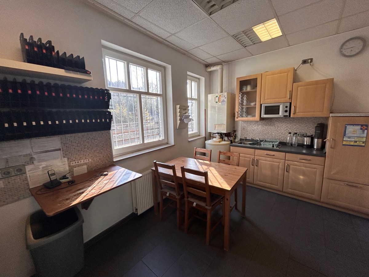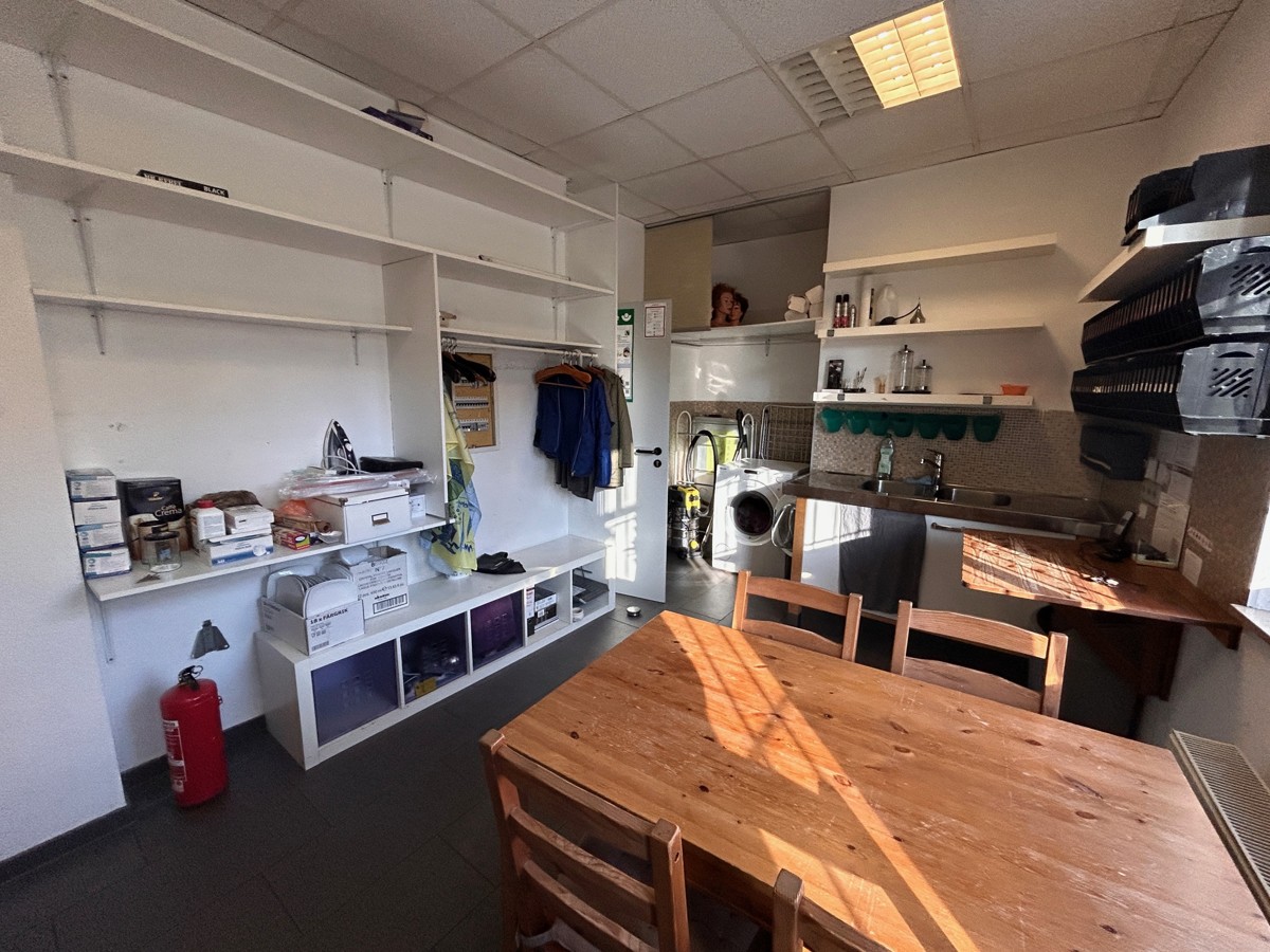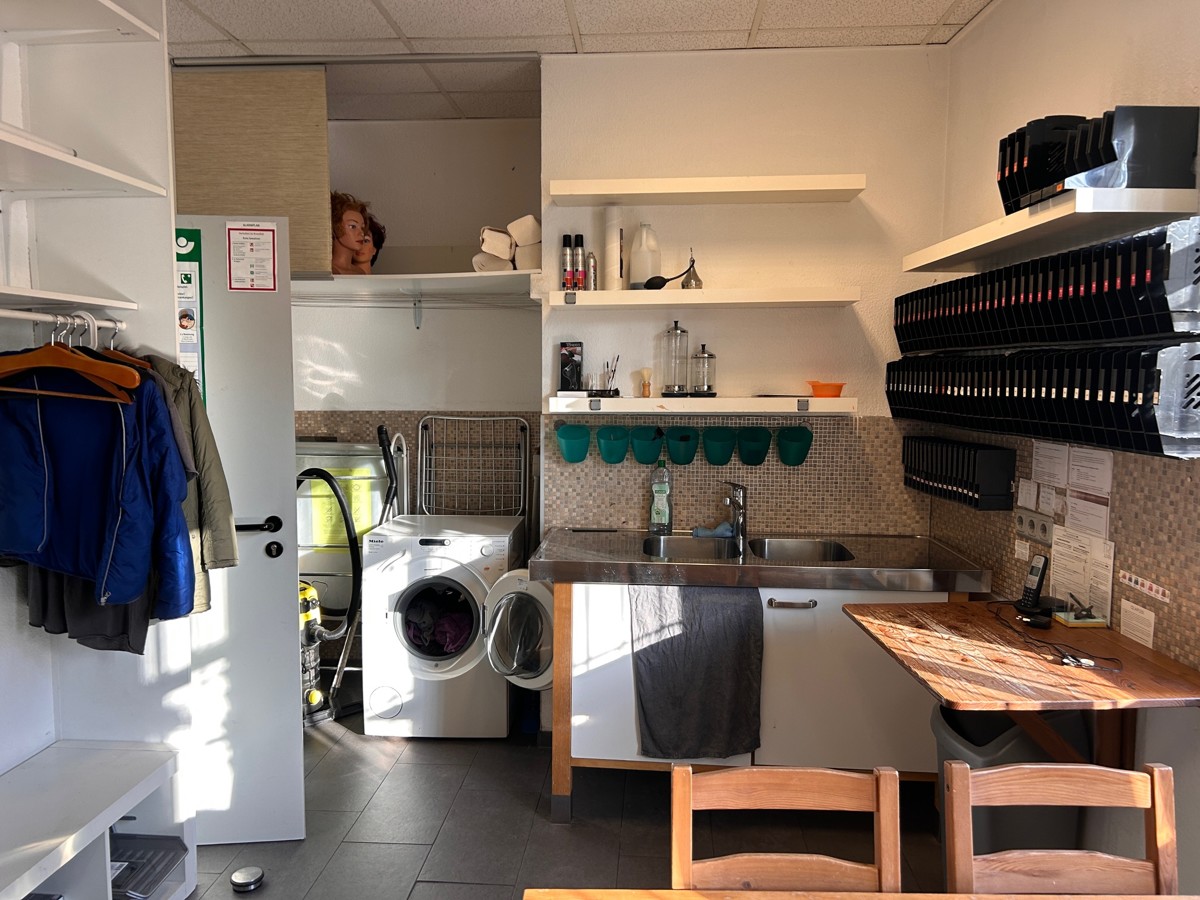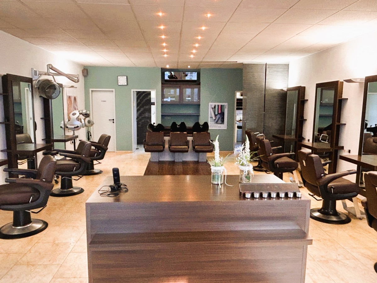 Die 90 qm große Gewerbefläche (Friseursalon) des 1986 erstellten Gebäudes beinhaltet den Friseursalon mit ca. 80 qm, 1 kleine Küche, ein Büro und ein WC. Außerdem gehören ein kleiner überdachter Außenbereich dazu.